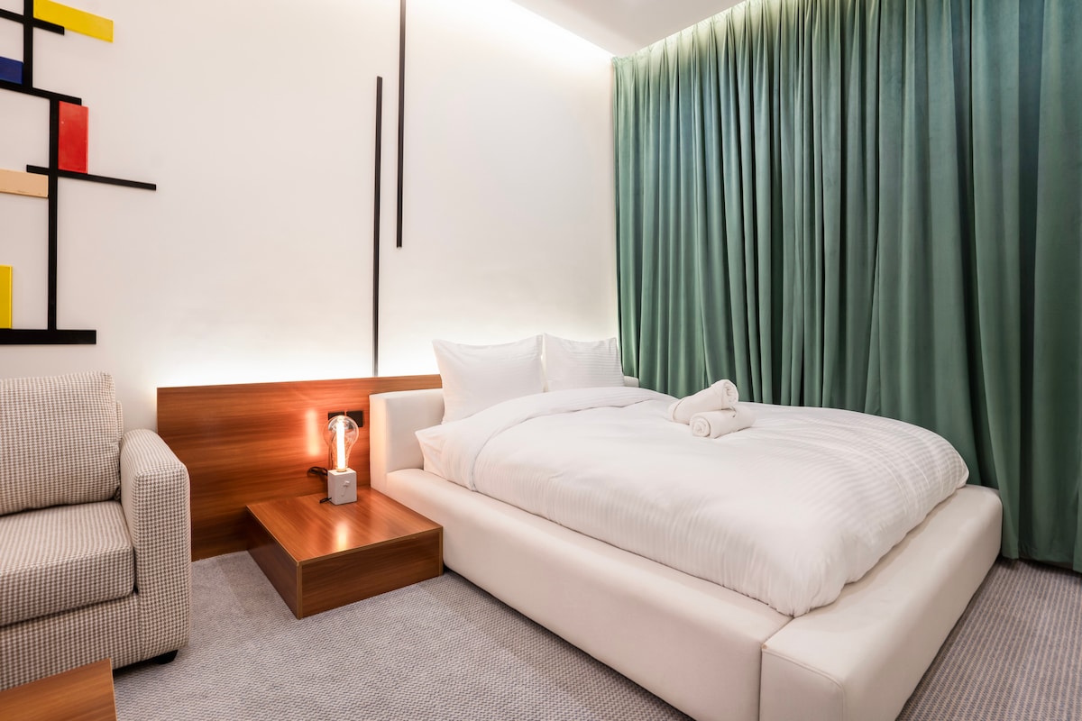 Este espaço único tem um estilo próprio concebido para oferecer conforto, elegância e um toque de luxo. Cada quarto está cuidadosamente mobilado com uma decoração chique e acabamentos de alta qualidade. Desfrute de comodidades premium, incluindo uma experiência VIP de Cinema, televisões de ecrã plano QLED, máquinas de chá/café, secadores de cabelo, toalhas de pelúcia e um pacote de boas-vindas gratuito. Quer esteja aqui para uma escapadela curta ou para uma estadia mais longa, vai sentir-se em casa com os nossos confortos modernos e toques personalizados.