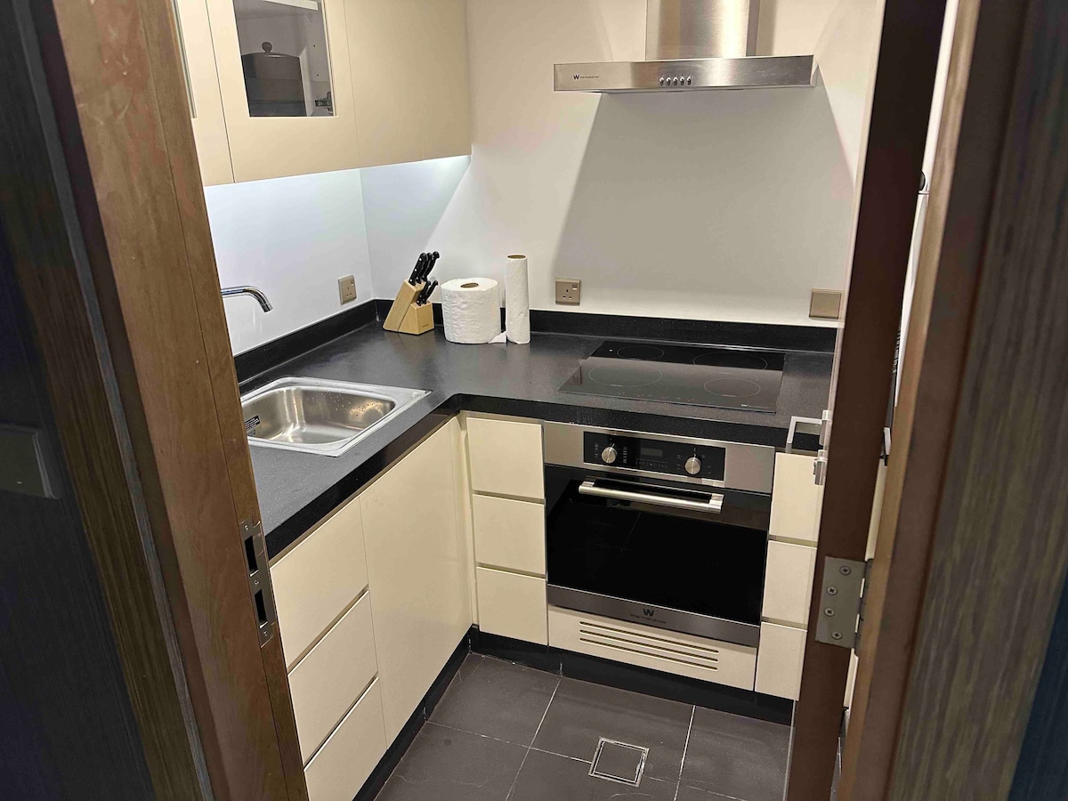 Apartamento acolhedor de um quarto com check-in automático DAMAC Tower, convenientemente localizado em frente à Torre do Reino e perto de todas as principais áreas e da estação de metro. Os hóspedes podem desfrutar de acesso total a todas as instalações da torre, à piscina, ao ginásio e ao spa. • 8 minutos a pé da estação de metro (Al Orobah). • 4 minutos a pé da Torre do Reino, com mais de 160 lojas e restaurantes. • 14 minutos das principais atrações da época de Riade, como Winter Garden, Boulevard World & City, Al Murabba, Riyadh Front e Diriyah.