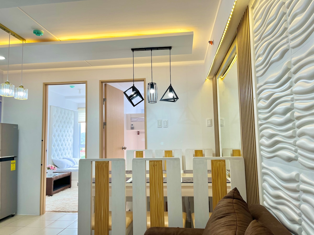 Relaxe com toda a família neste alojamento tranquilo. Unidade de canto de 50 m ² e 2 quartos, totalmente climatizada com Internet a 150 Mbps, desfrute de uma bela vista para as montanhas Antipolo a partir do último andar do edifício, pode ter chuveiro de água quente, televisão inteligente de 60 polegadas 4k grande, máquina de lavar e secar roupa automática, chuveiro quente, uma cozinha totalmente equipada e camas de alta qualidade.