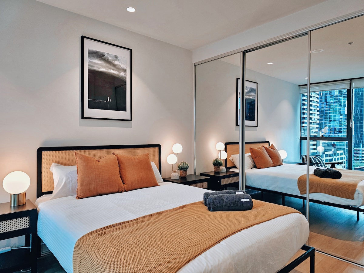 Apartamento elegante no centro de Melbourne | Piscina, ginásio e Wi-Fi
