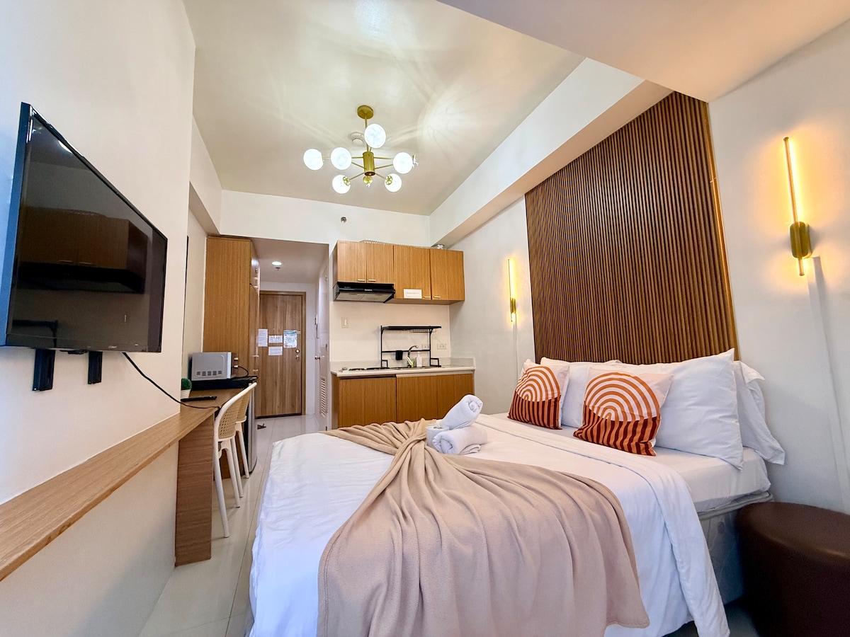 Pensado com um toque moderno, este estúdio acolhedor no 43.º andar oferece conforto e conveniência para viajantes, casais ou trabalhadores remotos. Desfrute de manhãs tranquilas e noites repousantes acima do horizonte da cidade. • Cama queen confortável com roupa de cama limpa • Equipado com ferro de engomar e secador de cabelo para sua comodidade • Espaço limpo e acolhedor para uma estadia relaxante • Perto de Robinsons Place, Intramuros e Luneta Park • Localizado mesmo em frente à Embaixada dos EUA em Manila