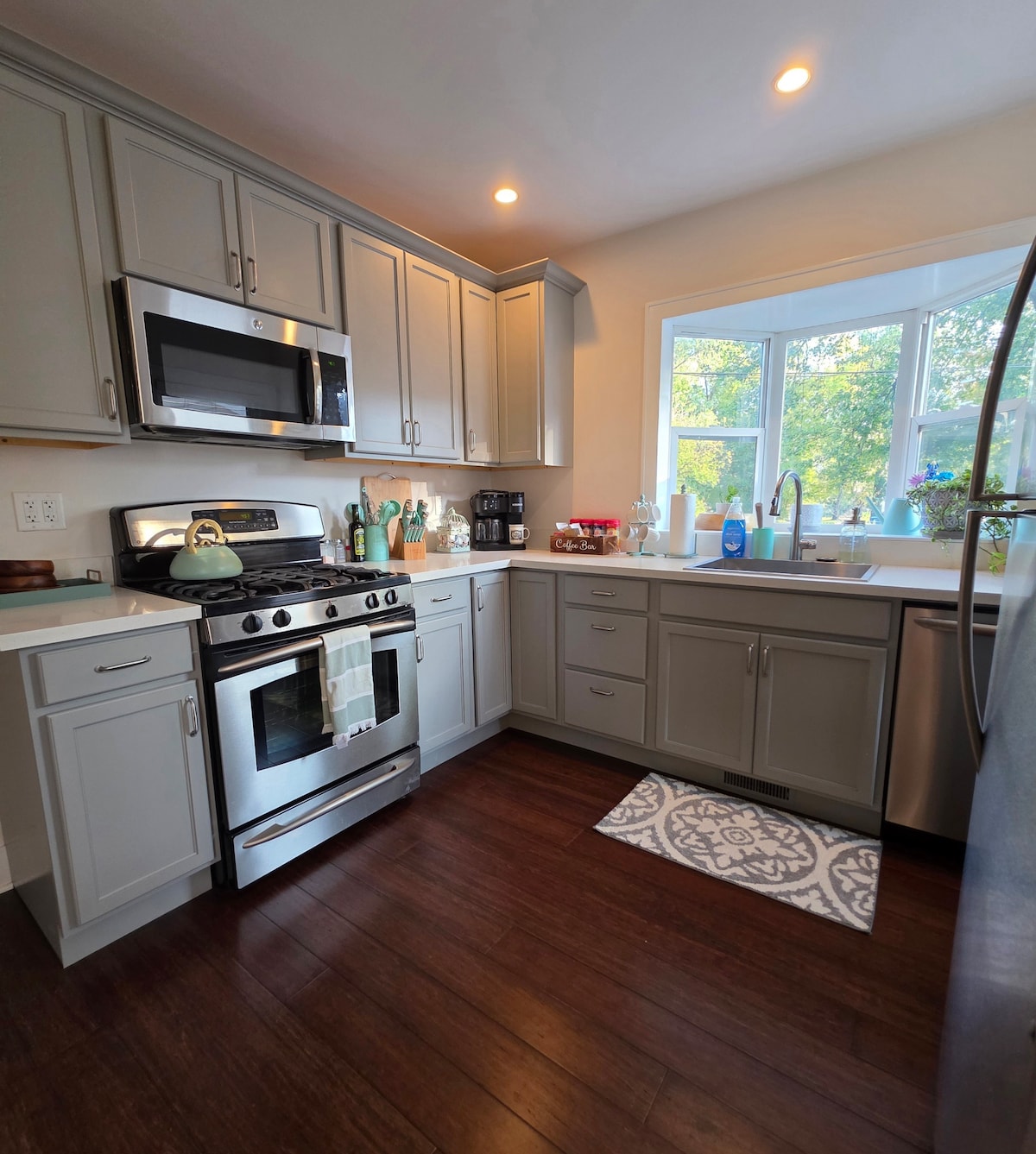Casa tranquila perfeita para profissionais que viajam! Esta casa está localizada no final de uma rua tranquila sem saída, com um grande quintal e uma pequena área cercada! Totalmente atualizado e totalmente abastecido com tudo o que precisa para viver confortavelmente. Um quarto principal com cama queen e um grande roupeiro, cama murphy de tamanho completo disponível mediante pedido no 1º andar, casa de banho grande, cozinha com eletrodomésticos atualizados, ginásio de tamanho completo, lavandaria, espaço de escritório, área de jantar, sala de estar e lareira/churrasqueira ao ar livre com um deck!