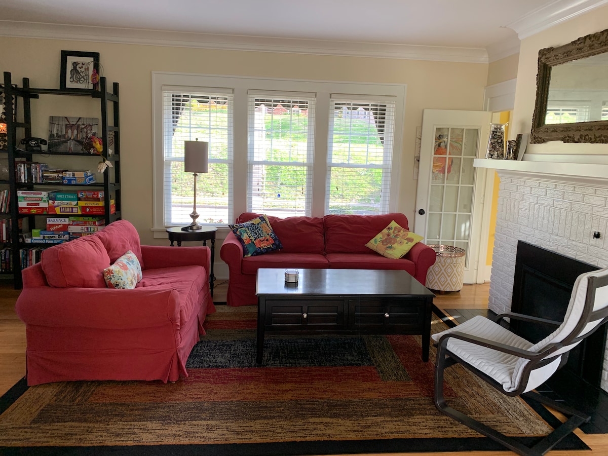 Casa imponente e encantadora de 1920 nas alturas históricas de McClellan em um terreno isolado cercado por árvores e vida selvagem. Vista das luzes da ponte do centro do rio No outono, chamadas de corneta do Arsenal às 6:30 9:30 e 22:00. Bairro muito tranquilo e seguro na rua estreita e de baixo tráfego. A uma curta distância a pé de bares (música ao vivo aos fins de semana) restaurantes, lojas, loja kwik, café, parque infantil Lindsey Park, táxi aquático no rio, trilha de bicicleta de 70 milhas. A minha propriedade está protegida com uma fechadura inteligente