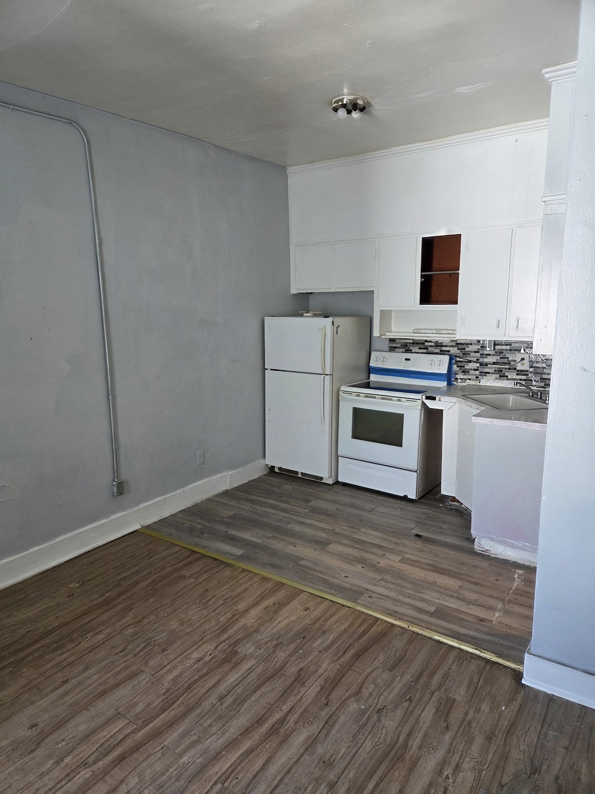 This newly renovated apartment in the historic Mary-Henry House is the perfect temporary home for someone traveling for work. This nice, safe, and clean property is a great alternative to hotels or motels. This upstairs unit features a bedroom with full size bed, dresser, and smart TV, a full size shower in all new bathroom, as well as nice closet. The other room features a full kitchen, small dinette set, and loveseat sitting area. Parking for 1 vehicle, shared laundry room on middle floor.