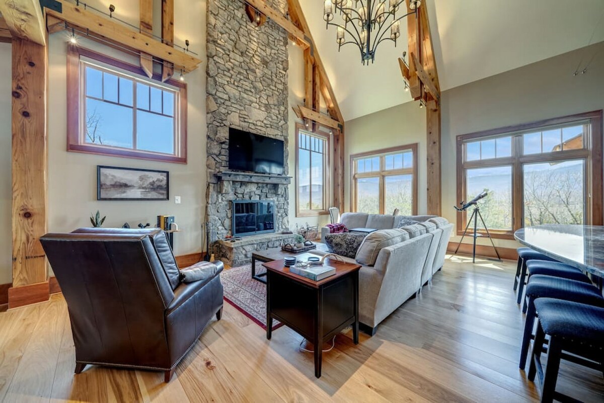 Fuja para o Blue Ridge Mountain Lodge, onde o relaxamento e a aventura se encontram. Situado no coração das montanhas, este retiro de 4 quartos e 2 casas de banho oferece vistas deslumbrantes a partir do terraço. Reúna-se à volta da lareira para comer s'mores, mergulhe na banheira de hidromassagem ou rejuvenesça na sauna. Um mural deslumbrante de 30' para fotos memoráveis, enquanto a sala de jogos promete horas de diversão para todos. Experimente a mistura perfeita de relaxamento e emoção nesta escapadela inesquecível. É necessário um 4x4 em condições de neve/gelo.