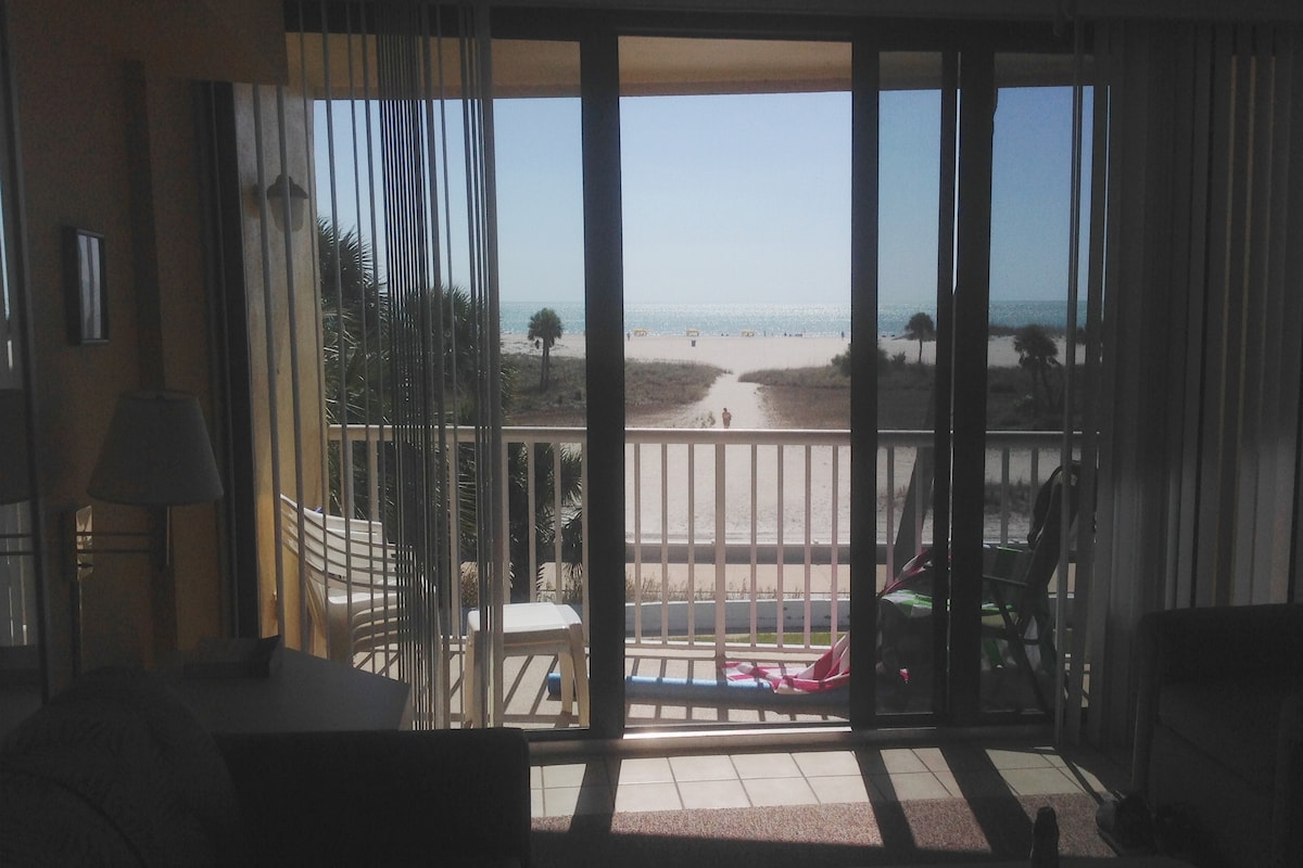 Condomínio no último andar de 800 pés quadrados com vistas espetaculares do Golfo do México, da Baía de Boca Ciega e da cidade. Localizado no icônico Island Inn Beach Resort; saia do saguão e vá para a areia! Os nasceres e os pores do sol da Flórida são lendários, e você pode desfrutar de ambos da sua varanda privativa no último andar. Oferecemos um dos melhores condomínios do edifício com a capacidade única de desfrutar de vistas para o norte, sul, leste e oeste. Este condomínio é diferente de qualquer outra unidade no edifício - imperdível!