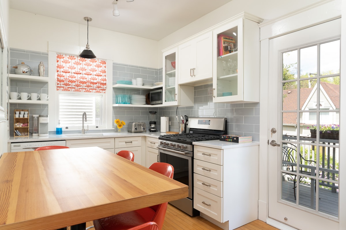 Recém reformado, o Greenleaf é todo o segundo andar de um apartamento em uma rua residencial. Foi cuidadosamente projetado para conforto e conveniência. Ótima localização para visitas à Loyola e Northwestern University ou passeios turísticos no centro da cidade. A parada Metra para trens para o Loop ou os subúrbios da costa norte fica NO NOSSO QUARTEIRÃO. As praias gratuitas do Lago Michigan ficam a 1,6 km de distância. Caminhada fácil para uma variedade de pequenos restaurantes ou 10 minutos de carro para Evanston ou Andersonville para refeições e compras incríveis.