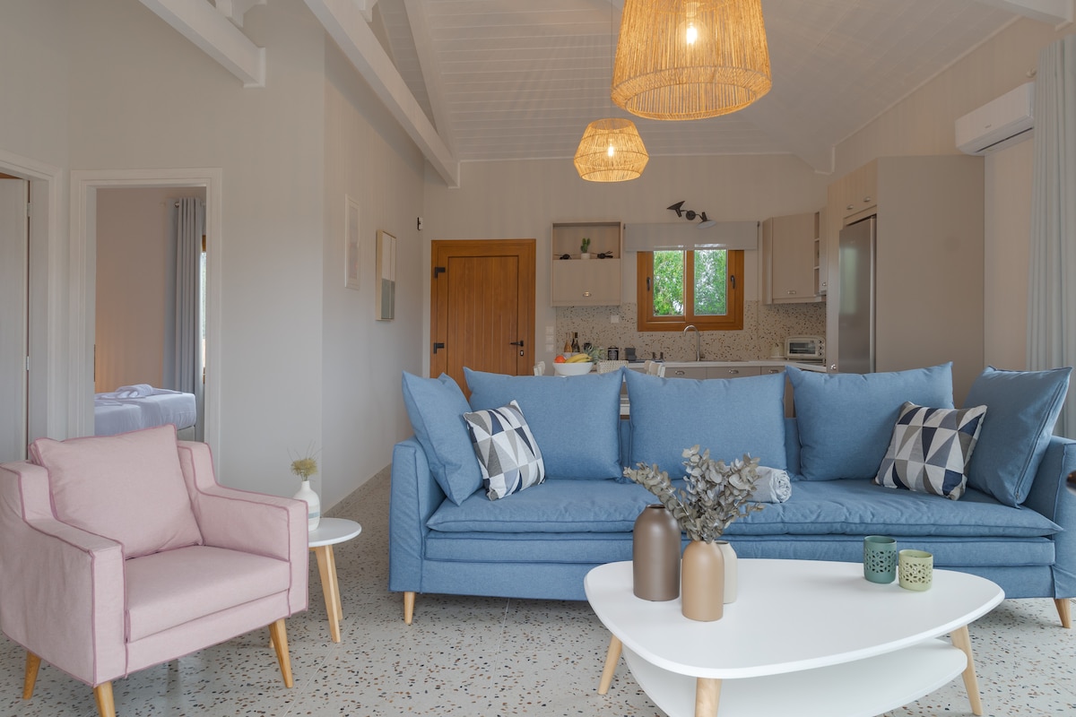 Esta impressionante propriedade está localizada em Akrotiri, no topo de uma colina, desfrutando de vistas panorâmicas claras tanto para o porto como para a cidade de Zante. Está convenientemente situado a apenas 4 km do porto e da praça principal da cidade velha. Os móveis BoConcept na sala de estar, o quarto com os sistemas de sono naturais e a roupa de cama da COCO-MAT, bem como o toque suave da roupa de cama Guy Laroche de alta qualidade, completam a sensação de uma estadia de luxo.