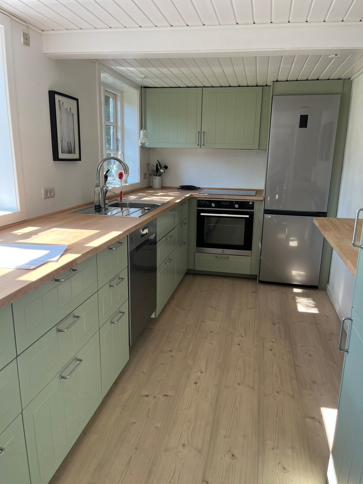 Aahytten é uma casa mais antiga e acolhedora de 1877. A sala de estar é espaçosa com lareira, televisão e Wi-Fi, o estilo é rústico e descontraído. Belo terraço virado a oeste, sol da manhã no final do jardim, terreno natural isolado com Muleå através do jardim. A casa de banho está numa extensão, tem de sair sob um terraço coberto, para chegar à casa de banho, onde há uma máquina de lavar roupa, lavatório e espaço no armário. Melhorámos muito em Aahytten nos últimos 10 anos e continuamos a melhorar na casa