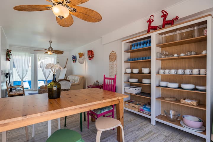 A casa de praia ( até 16 pessoas), perfeita para passar tempo com família ou amigos. Decorada com pormenor, vai sentir-se em casa e pode ver as recordações das nossas viagens pelo mundo.