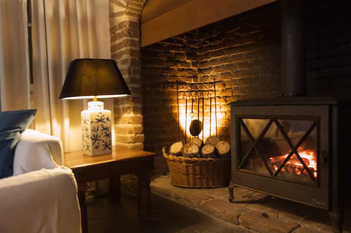 Estas comodidades são ótimas para viagens de verão: lareira exterior, piscina e mesa e cadeiras de exterior.