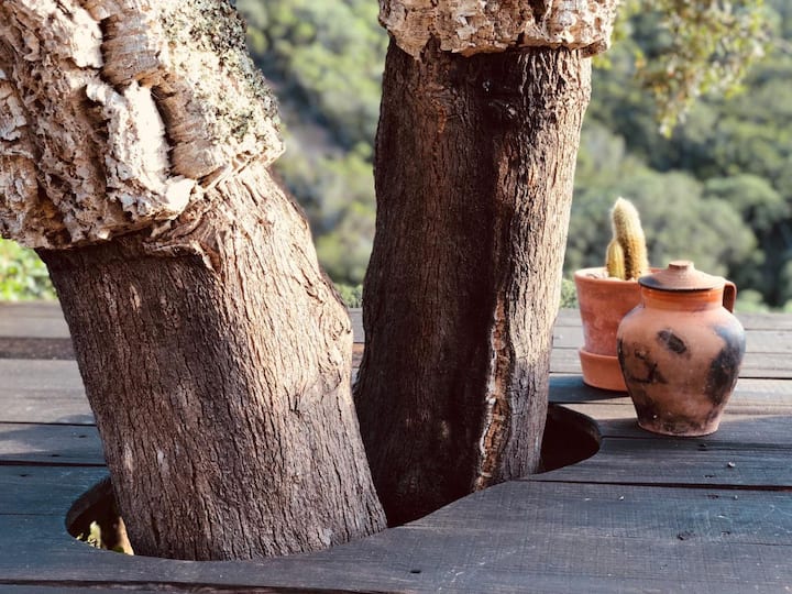 Na propriedade existem quatro plataformas de madeira, isoladas umas das outras, com vistas deslumbrantes. As plataformas URZE e ROSMANINHO proporcionam alojamento em tendas glamping (campismo com glamour), espaçosas e elegantemente decoradas com peças de artesanato alentejano. As plataformas CARDO e ESTEVA estão disponíveis para fazer Yoga, Chi Kung, ou outras actividades.
