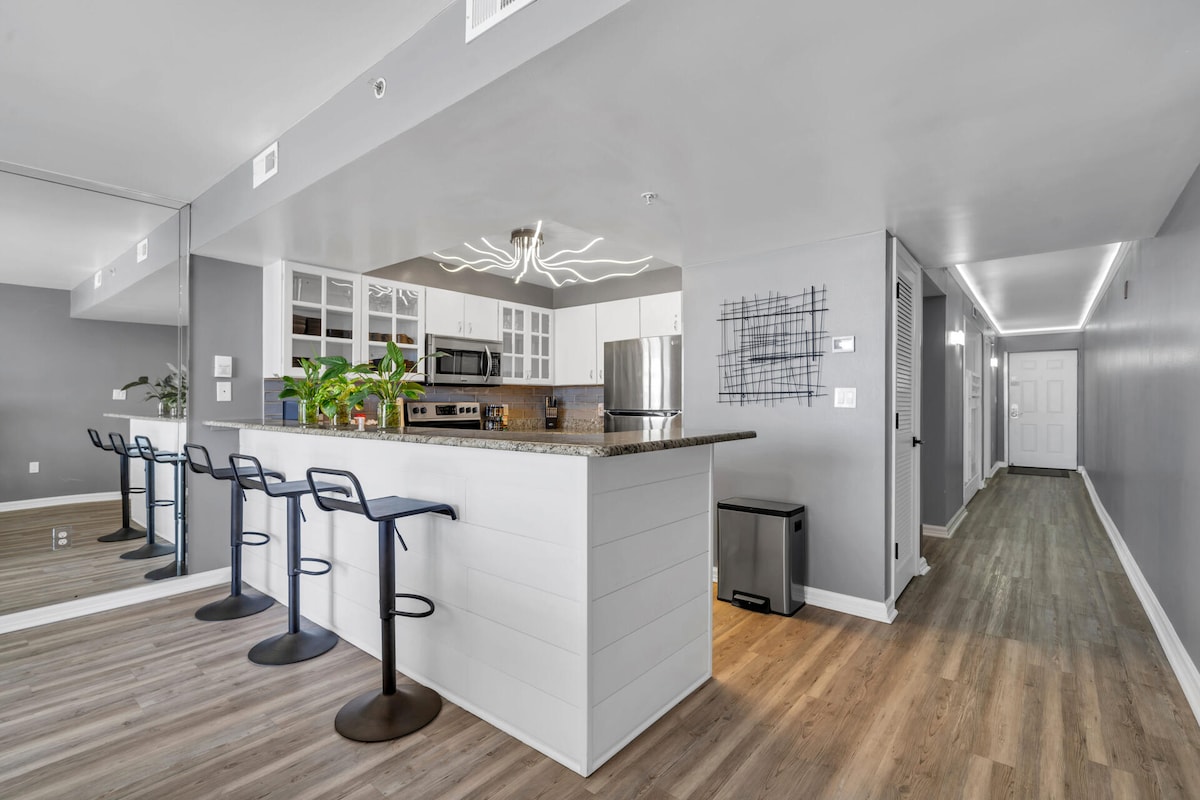 Observação: foram recentemente adicionadas vigas de suporte de madeira extra à varanda, o que pode obstruir ligeiramente a vista para a piscina e para o pátio. Pode haver ruído de obras entre junho e agosto, devido à substituição dos elevadores num edifício próximo. A 5 minutos a pé da praia pública em Winston lane~5 minutos a pé de Rosemary Circle~ Big Bad Breakfast Restaurant no local~ A uma curta distância de restaurantes e lojas~ 4 cadeiras de praia~ 4 toalhas de praia~ 2 bicicletas gratuitas fornecidas Desfrute de todo o luxo de uma reserva