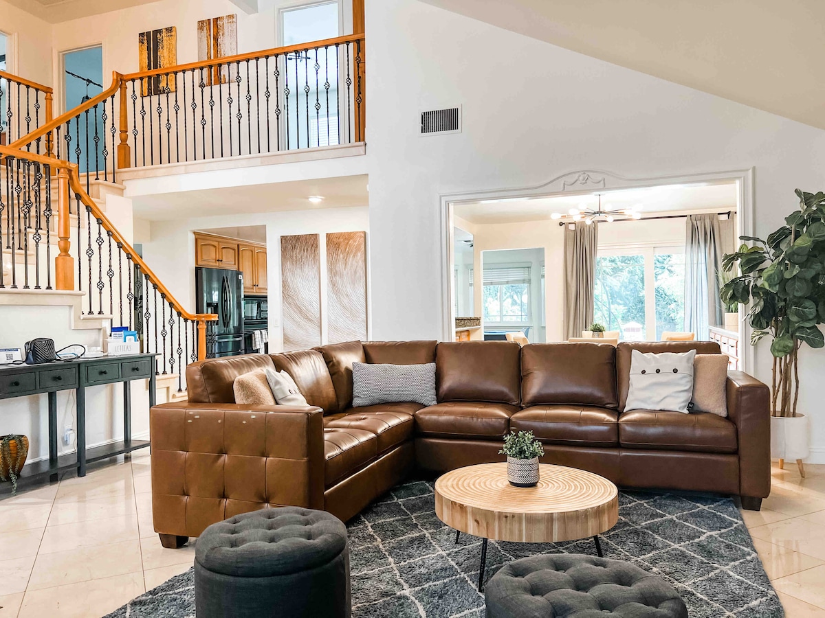 Entre numa casa fresca e acolhedora que irá acomodar a sua grande reunião de grupo e escapadela. A nossa casa dá-lhe as boas-vindas com mobiliário e comodidades luxuosas para tornar a sua estadia inesquecível. Desfrute de jantar e bebidas na sala de jantar/família aberta e tempo de qualidade com amigos e familiares. Esta é a Airbnb que procurava! Está localizado centralmente entre Los Angeles e Orange County. Explore a Disneyland, os Estúdios Universal e as belas praias do sul da Califórnia.