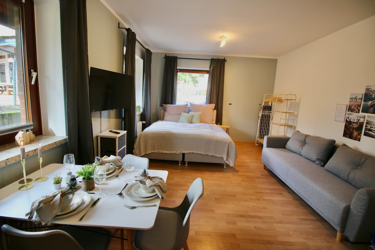 Experimente o conforto neste aconchegante apartamento de estilo nórdico, que oferece de 36 a 38 m² de espaço bem projetado. O apartamento dispõe de um quarto com cama de casal, um banheiro, uma área de estar e jantar acolhedora e uma cozinha totalmente equipada. Capacidade máxima: 4 pessoas (sofá-cama de casal para 2 pessoas) Para estadias de 7 noites ou mais, a limpeza semanal está incluída. É possível reservar serviços de limpeza adicionais por um custo adicional. Roupa de cama e toalhas incluídas.