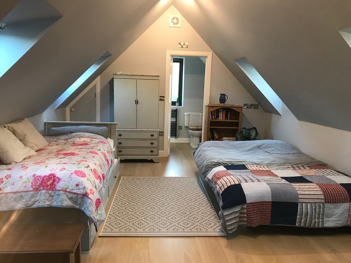 A Coach House é um espaço recém-convertido em plano aberto com uma ligação à Internet muito boa em uma localização tranquila e arborizada à beira da floresta de Ashdown. É adjacente, mas separado da casa principal Fairstowe e é ideal para ocupação familiar ou um casal. Os hóspedes têm a liberdade de ter ocupação exclusiva. Pode ser criado um segundo quarto fechando uma porta multifuncional, onde é fornecida uma cama de solteiro para um hóspede e uma cama dobrável para um segundo.