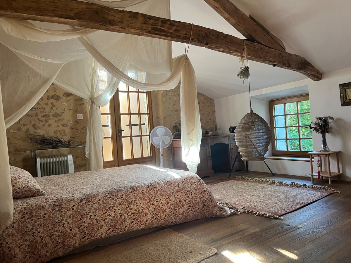 Venha recarregar as baterias em um ambiente natural. Idealmente localizada no coração do vale do Vézère, a 5 km de Eyzies, capital da Pré-História, entre Montignac-Lascaux e seu centro internacional de arte parietal, e Sarlat, a cidade medieval, cidade de arte e história, nossa fazenda Périgourdine oferecerá todo o conforto e tranquilidade. Composta por uma espaçosa sala de estar (wifi, tv), cozinha, quarto (cama de casal) e um banheiro. Termine o dia ao lado da lareira (gratuito).