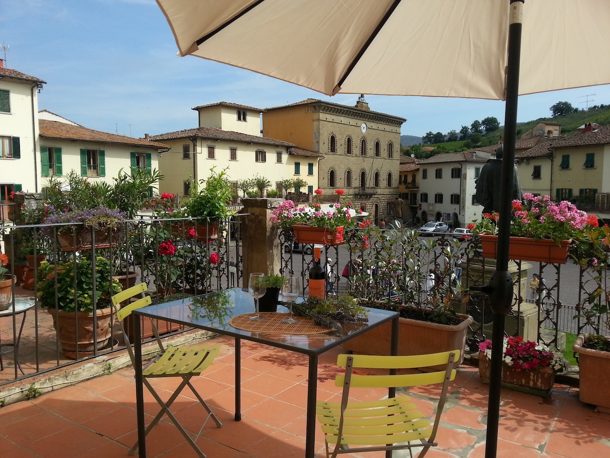 Com vista para a característica e famosa praça de Greve, uma verdadeira porta de entrada para Chianti, o coração e a alma da aldeia medieval de Castello di Montefioralle, pequeno apartamento pitoresco de 3 quartos com um terraço privado mesmo na praça