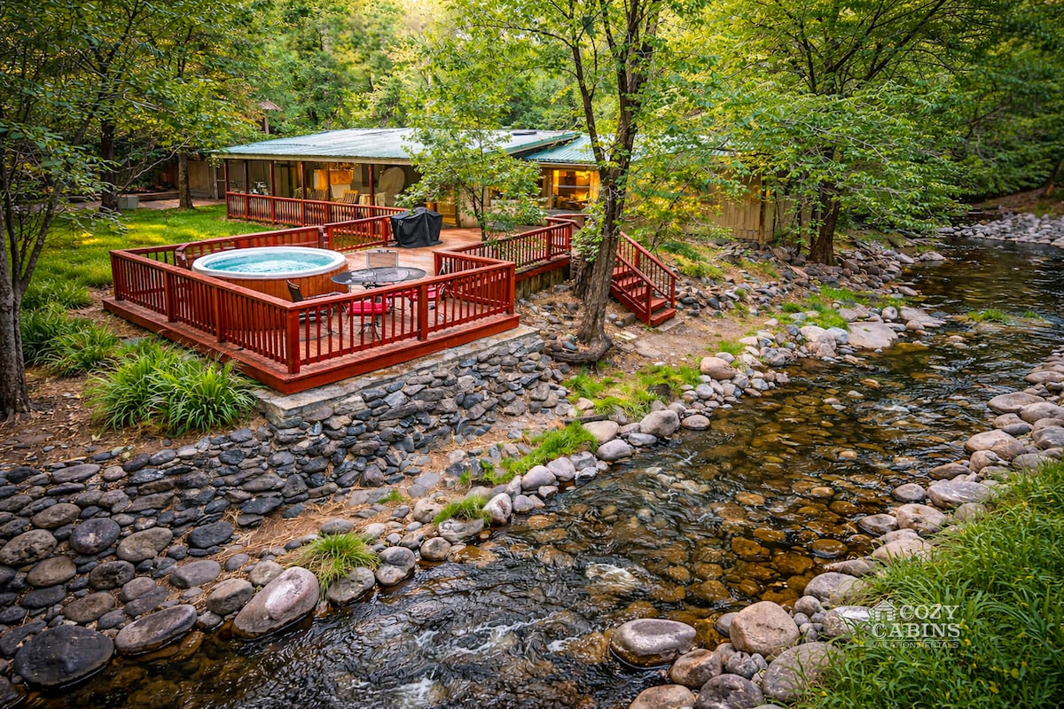 Riverfront Cabin: Hot Tub, Fireplace, Near Midtown