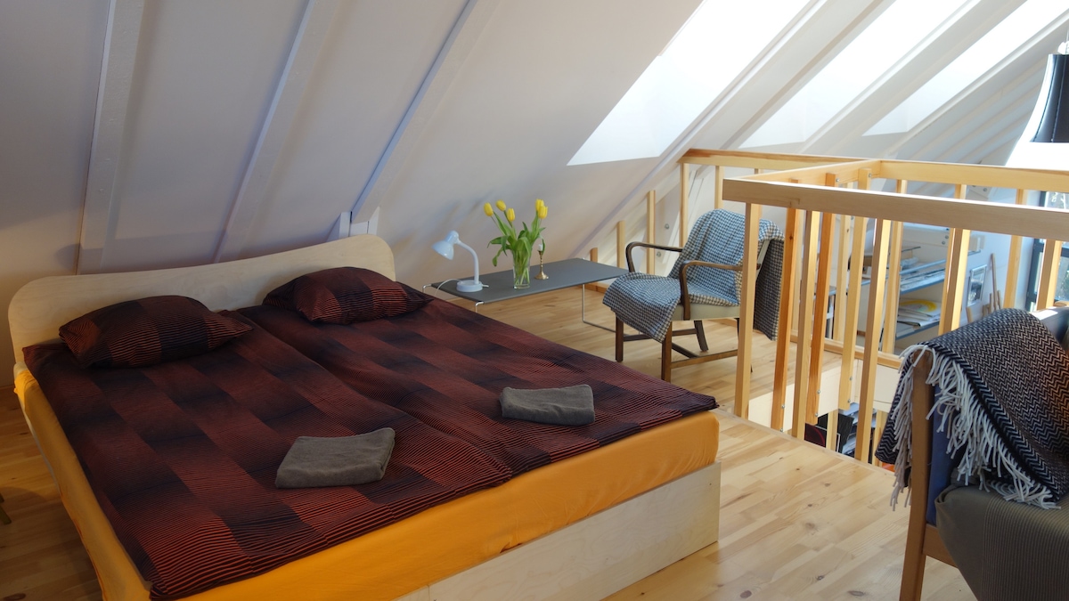 Apartamento espaçoso com um loft no coração de Kuldīga, na Cidade Velha, numa rua pedonal, que pode ser vista da janela do apartamento. Este é um apartamento de um quarto em plano aberto localizado no segundo andar do edifício. Cozinha e casa de banho muito espaçosa (12m2) com tudo o que precisa. Há uma área de dormir no sótão e também um sofá-cama de casal na sala de estar. Um vestiário separado onde pode guardar convenientemente os seus pertences e roupas.