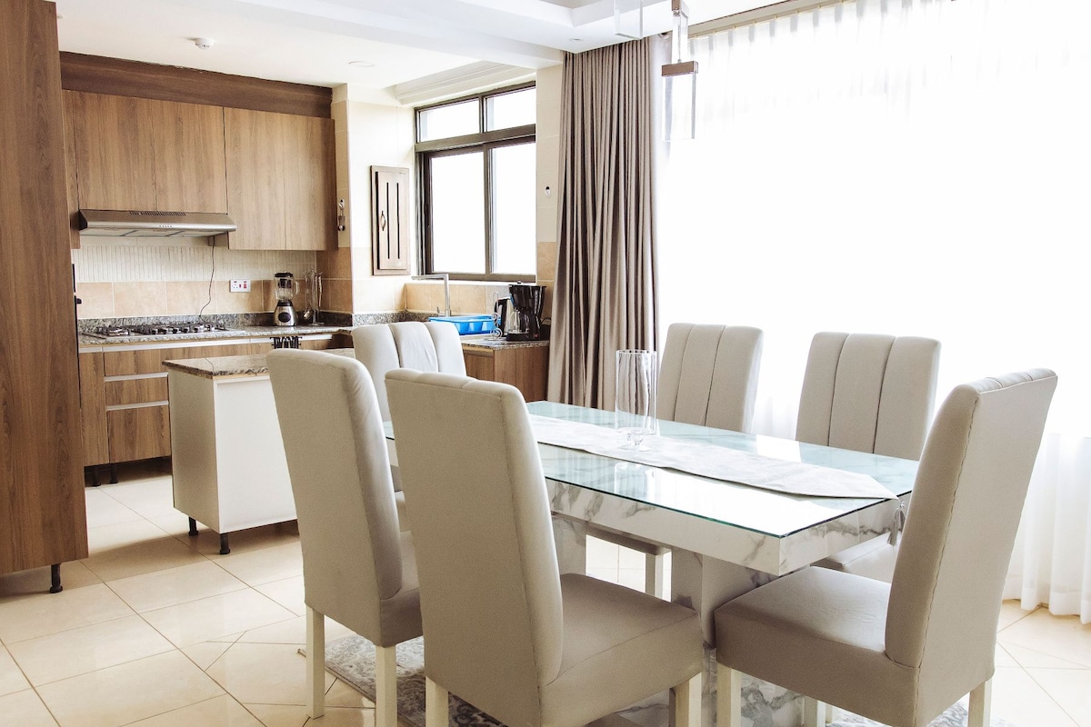 Apartamento executivo com 3 quartos numa zona residencial muito calma e luxuosa da cidade de Kigali. O apartamento está equipado com mobiliário e eletrodomésticos novos e modernos. Uma smartTV de 58 polegadas com fotos 4K, uma barra de som de alta qualidade, DStv e internet de alta velocidade estão disponíveis A propriedade fica a 15 minutos de carro do centro da cidade de Kigali, com centros comerciais, restaurantes e bares. Você vai experimentar uma estadia de luxo neste apartamento ultra-moderno como não onde mais em Kigali.