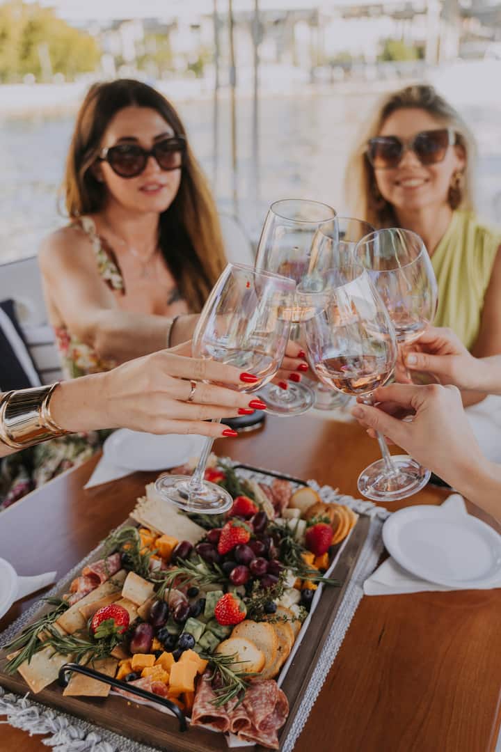 Passeio de barco de luxo com vinho e charcutaria