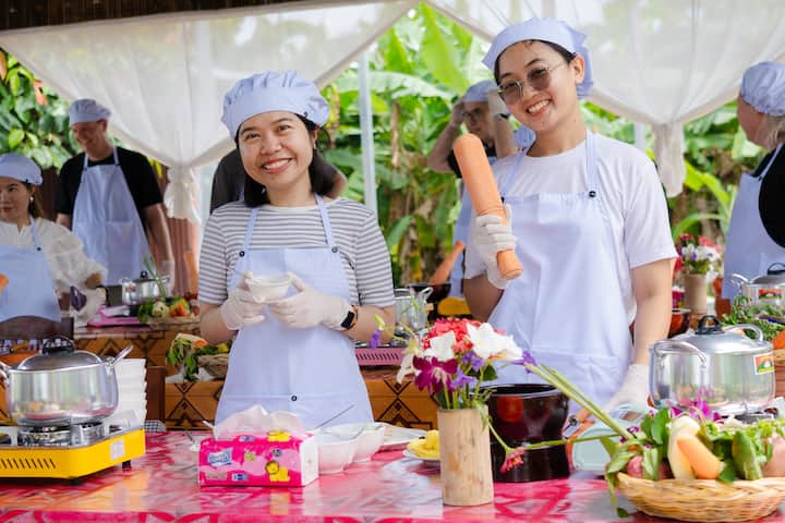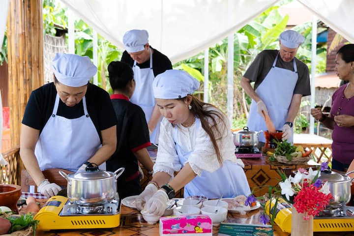 Aula de culinária cambojana em casa de moradores locais