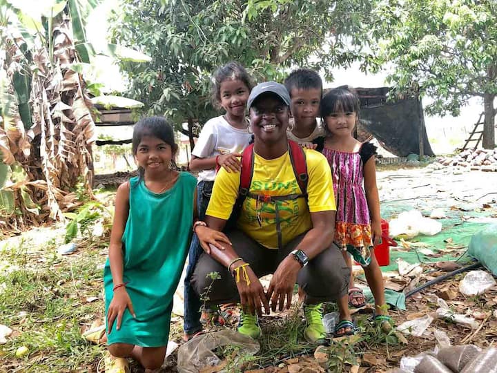 Campo cambojano autêntico em Jeep vintage