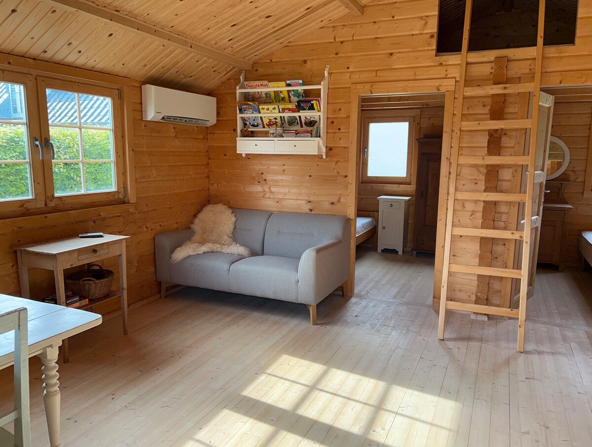 Pequena casa no campo (nossa casa vizinha). A casa é espaçosa e aconchegante. Um quarto com cama de casal no térreo e também um quarto com uma cama de solteiro. Um quarto de dormir fica no 1º andar. Há um grande terreno acidentado com muita natureza. E a oportunidade de voltar para "casa" em nosso jardim, chamado "Jardim da Aventura". Sem Wi-Fi