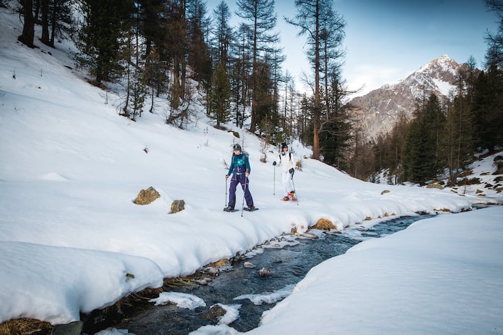 Passeio panorâmico com raquetes de neve em Bousson: uma hora de Turim