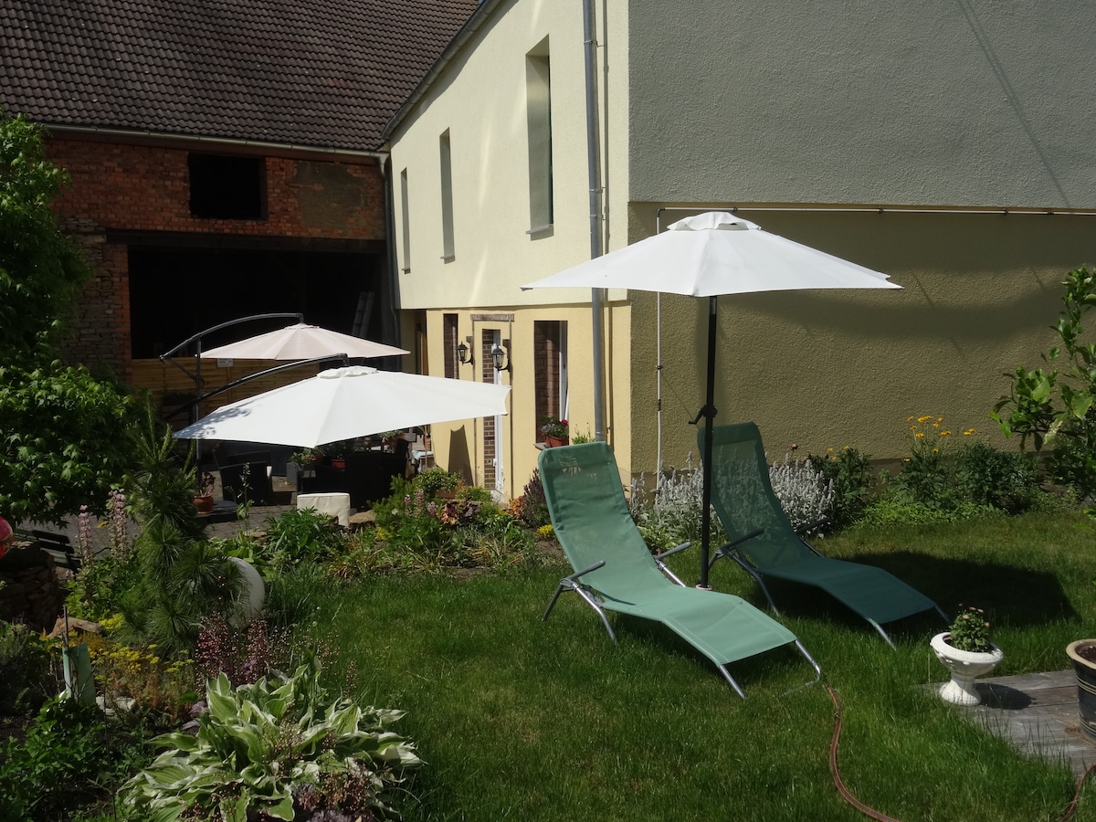 Ihr wohnt in der alten Mineralwasserfabrik inmitten von Feldern mit Terrasse, kompletter Küche, Bad mit Dusche und Badewanne, Quellpark, großem Pool (kostenfrei) könnt Ihr das Landleben auf dem Zweiseitenhof von seiner schönsten Seite genießen, unsere Pferde streicheln oder im Werbener See baden. Freundliche Hunde sind willkommen, Leipzig erreicht man in 20 min via A38 oder mit dem Bus über Land. (URL HIDDEN)
