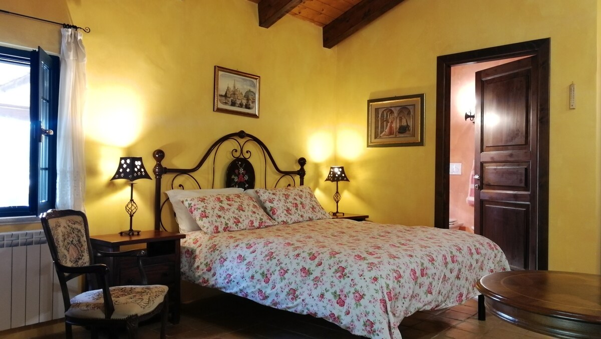 Uma casa de campo composta por pedra e madeira construída em dois andares, com uma grande sala de estar, janelas de vidro, um sofá para duas pessoas e uma casa de banho com sauna; no segundo andar há um quarto duplo. Ao ar livre, há um amplo jardim com uma varanda equipada com churrasqueira e uma mesa de madeira. O local está localizado nas colinas agradáveis entre Bellegra e Olevano Romano. Atualmente, adicionámos duas camas, configuradas num maravilhoso teep indiano disponível para dois hóspedes extra, além dos quatro.