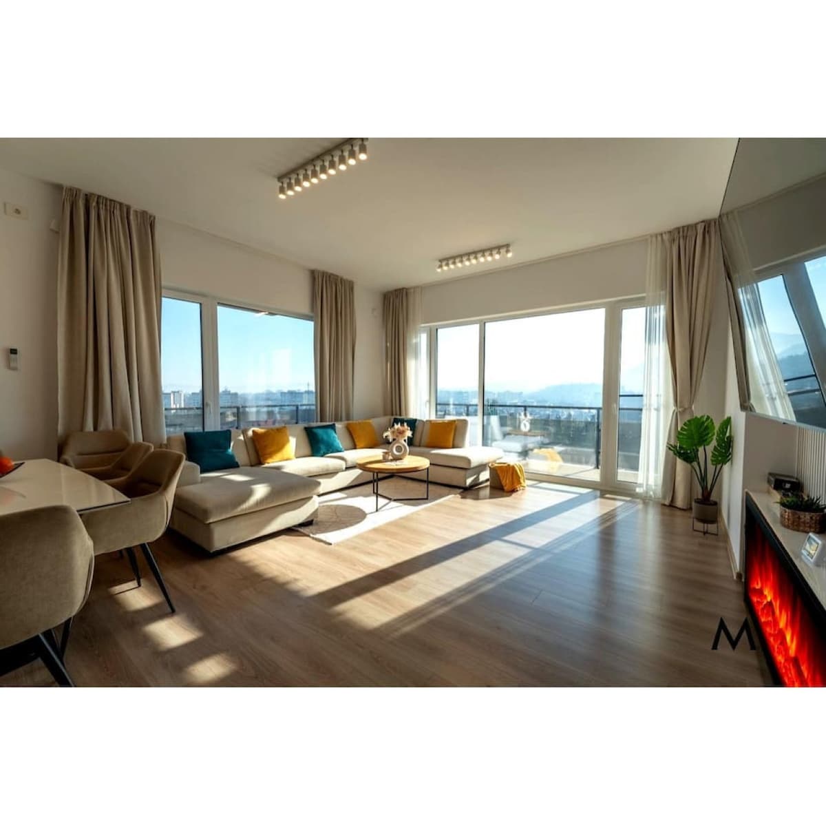 Espaço elegante com uma sensação aconchegante única. Desfrute de vistas incríveis sobre o horizonte da cidade e as melhores paisagens naturais de Brasov. Envolvido pela natureza, mas centralmente localizado e bem conectado. Explore as trilhas circundantes e a reserva de Tampa, enquanto está a poucos passos do centro histórico de Brasov. Depois de um dia inteiro, relaxe junto à lareira interna ou aproveite o ar fresco no belo terraço enquanto experimenta um nível incomparável de privacidade e tranquilidade.