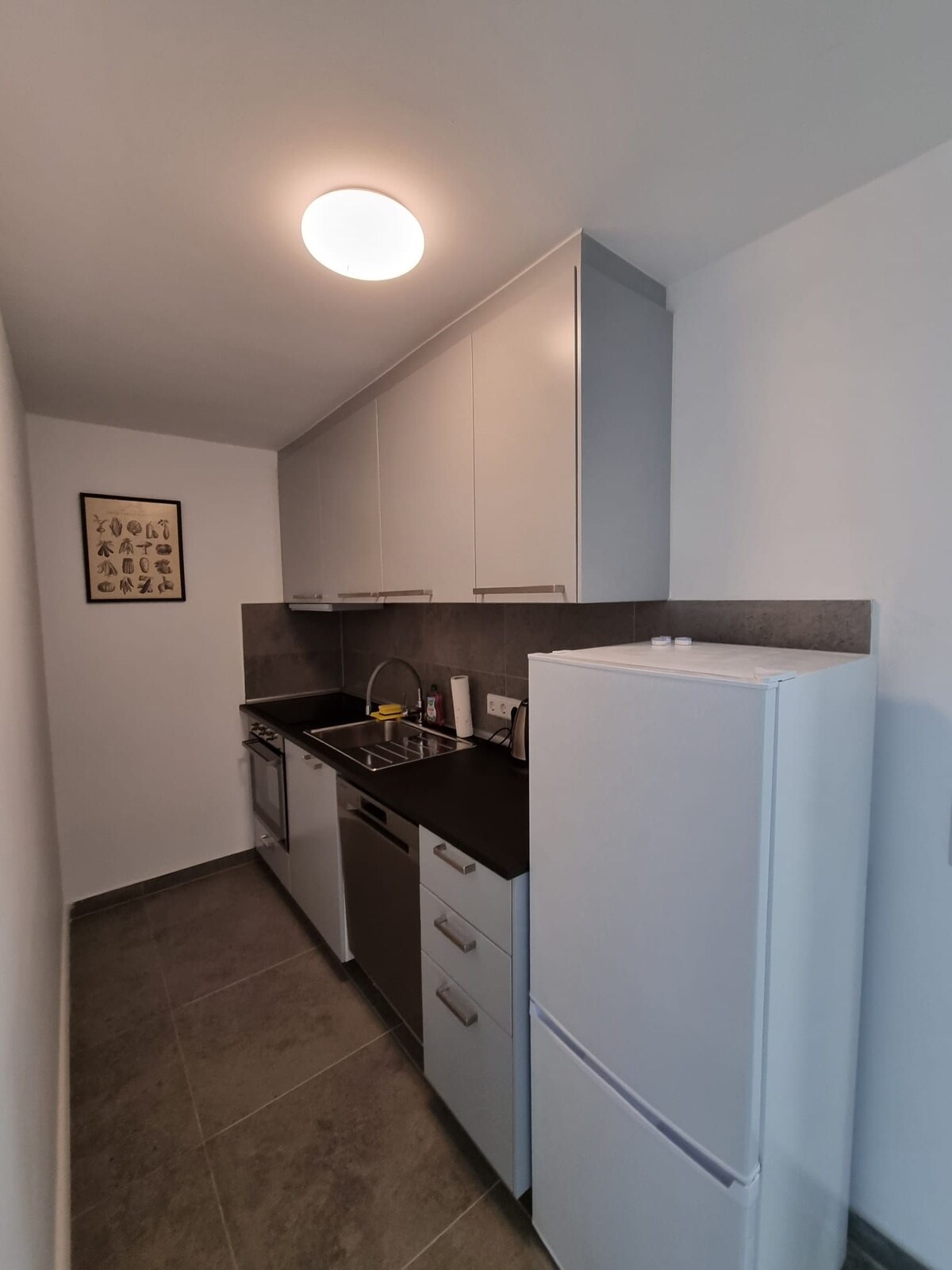Apartamento acolhedor e pequeno de 1 quarto no meio da ação. Ligação perfeita aos transportes públicos (paragem de autocarro a 50 m), ciclovia em frente à porta e um supermercado a poucos passos de distância. Ideal para viajantes urbanos, viajantes profissionais ou ciclistas em digressão. - Kitchenette equipada - Casa de banho moderna com chuveiro - Lugares para relaxar - Área de dormir com cama de casal (140 m)