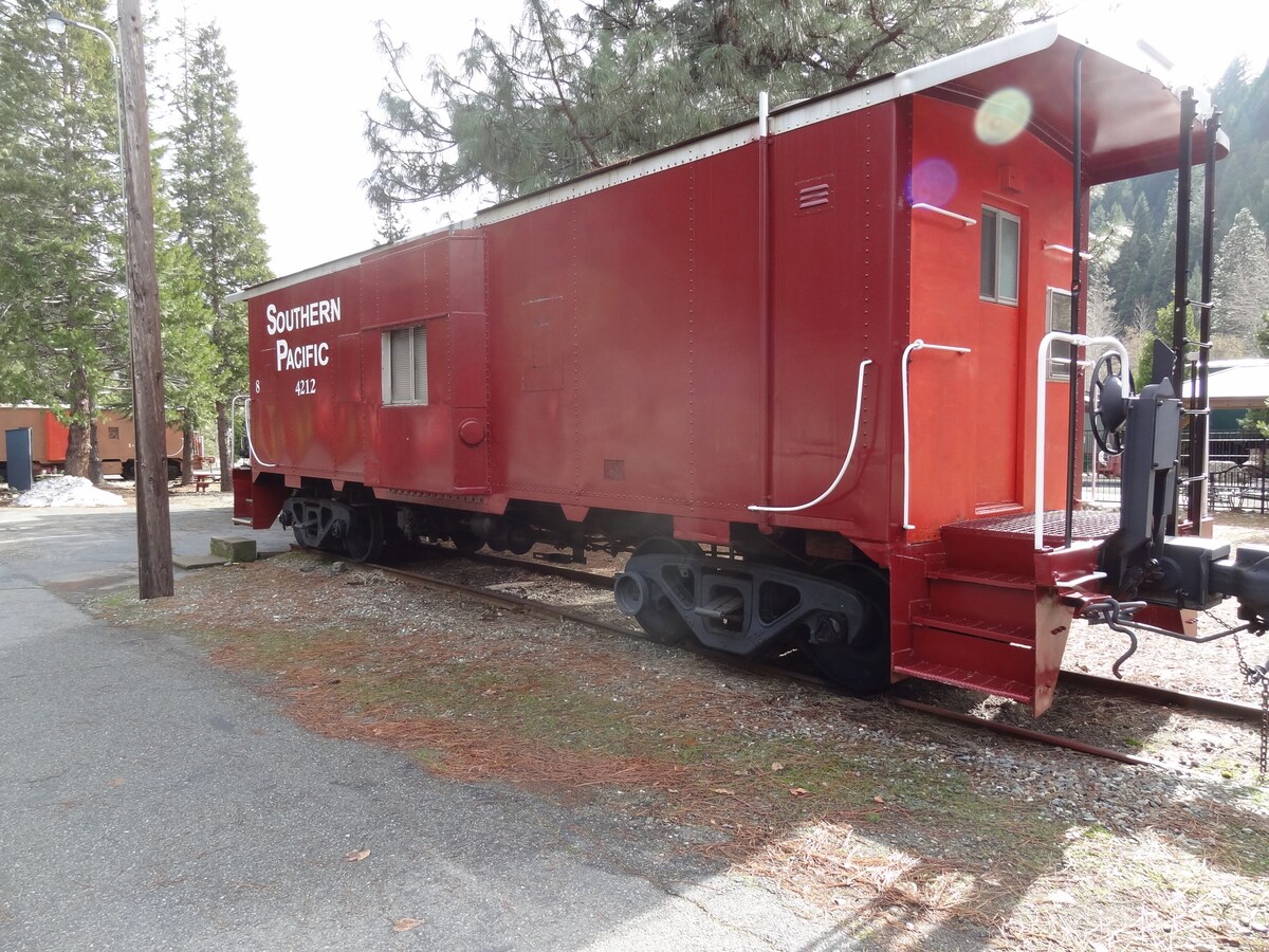 Settle into this charming Southern Pacific bay window caboose with its classic brown and orange exterior and warm wooden interior. Decorated with vintage railroad photos and signage that celebrate its rich history, Caboose #11 offers a cozy, character-filled retreat beside a peaceful babbling brook and just steps from the pool and restaurant.