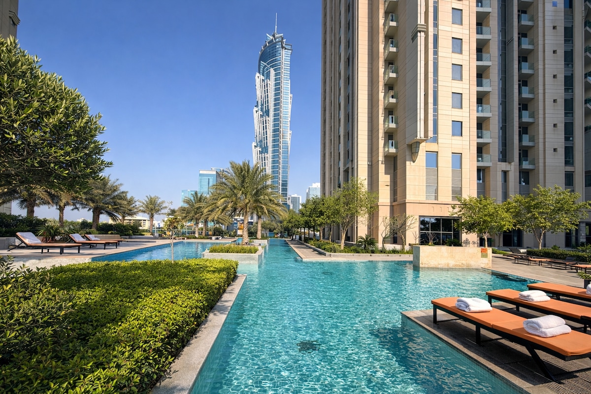 Desfrute de um luxo incomparável no Paramount Midtown, um deslumbrante apartamento de 1 quarto com vistas deslumbrantes para o horizonte do Dubai a partir da sua varanda privada. Desfrute de comodidades de classe mundial de 5⭐, incluindo a icónica piscina infinita, ginásio, spa e refeições no local. Perfeito para casais, famílias ou viajantes de negócios que procuram conforto, estilo e vistas inesquecíveis.