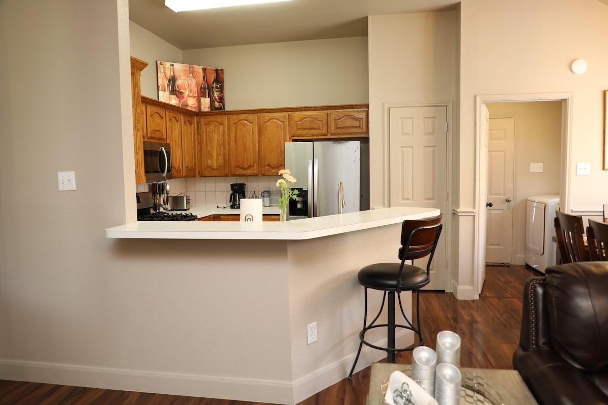 Arrendamentos totalmente mobilados incluem uma cozinha e as comodidades de que precisa para viver confortavelmente durante um mês ou mais. É a alternativa perfeita a uma sublocação.
