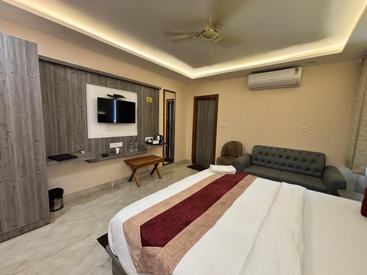• Espaçoso 2BHK no terceiro andar • 1 cama de casal, 2 camas individuais e 2 sofás-cama • Acomoda confortavelmente grupos pequenos e grandes • 3 quartos com ar condicionado para total conforto • 3 casas de banho modernas com água quente 24 horas por dia, 7 dias por semana • Cozinha modular totalmente equipada para cozinhar em casa com facilidade • Sistema de som Bluetooth integrado • Varanda aberta privada para chá da manhã e relaxamento à noite • Sala de estar luminosa e arejada com amplo espaço de estar • Ambiente de construção tranquilo, seguro e bem conservado