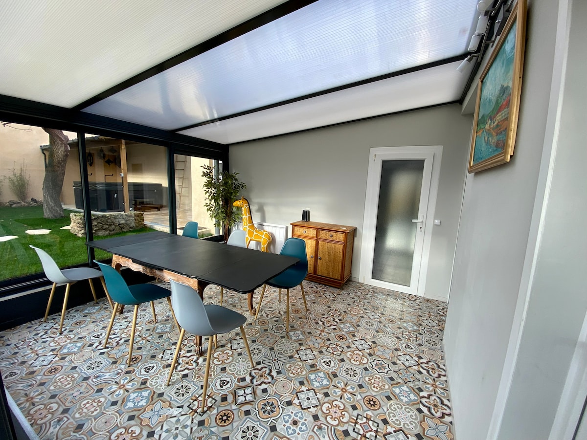 Casa de campo acolhedora com jardim e garagem privada a 10 min de Reims
