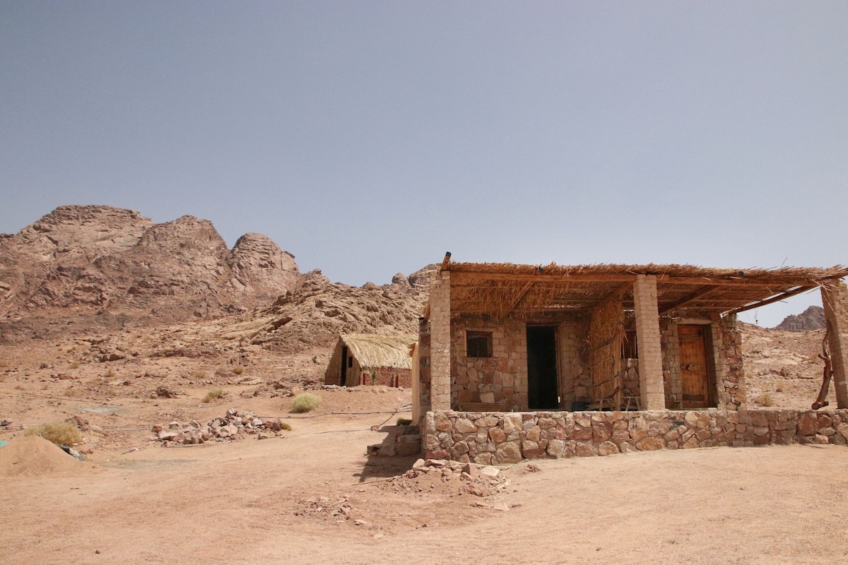 Esta é uma extensão da nossa propriedade principal, link abaixo https://www.airbnb.com/rooms/1137538289599129139?viralityEntryPoint=1&s=76 Localizado nos arredores de "St. Catherine" e com o pano de fundo dos majestosos picos do Sinai. Construído pela tribo "Al-Jabaliya" com rochas naturais no início do século XXI para consagrar o legado e a tradição do sustento natural. Os quartos foram concebidos para replicar casas beduínas com comodidades mínimas.
