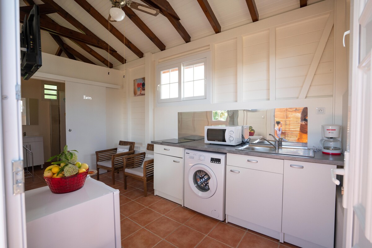 Bem-vindo ao nosso bungalow aninhado num ambiente tranquilo e verde, localizado a 5 minutos do aeroporto e a 10 minutos das belas praias. Este casulo inclui um quarto com ar condicionado, casa de banho, sanita independente e cozinha equipada. Desfrute de momentos relaxantes junto à sua piscina com bandeja flutuante, espreguiçadeiras e uma área de refeições. Com uma localização central para explorar o norte e o sul da ilha, o nosso bungalow é a base perfeita para as suas aventuras tropicais.
