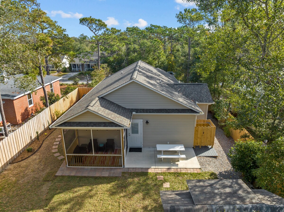 Renovated Master Bedroom Suite with shiplap walls, whirlpool tub and bidet toilet. Very Spa like and perfect for the single or couple that want to get away. Easy walk to beach., farmers market and outdoor concerts . Walking distance to eateries Your room has its own entrance on second story. Large screened in porch also yours to enjoy! We have Roku TV . New bedroom furniture and mattress with adjustable bed .