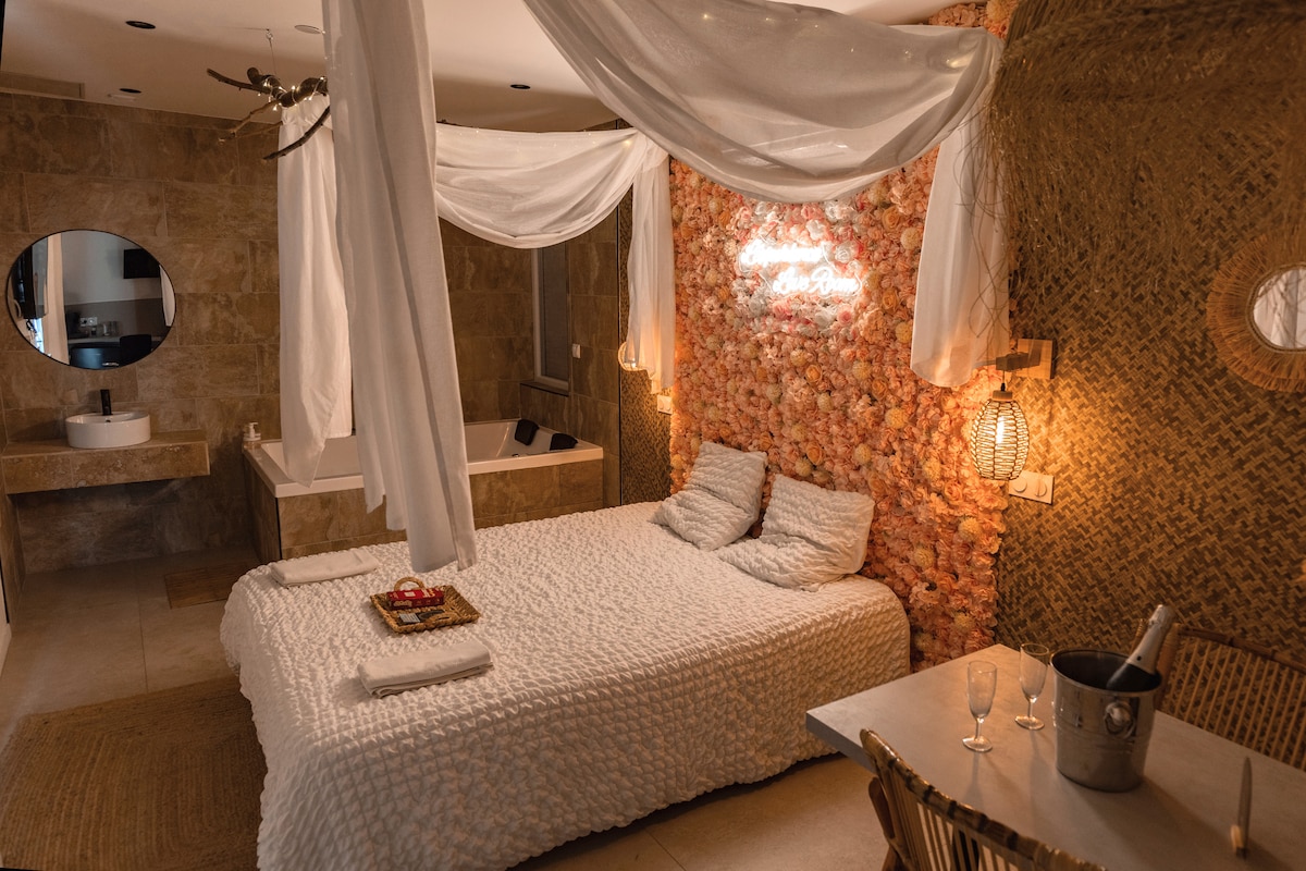 Bem-vindo ao nosso belo Love Room com tema balinês, um oásis de tranquilidade e romance situado no coração do exotismo balinês. Este quarto oferece uma escapadela perfeita para casais que procuram serenidade e privacidade. • Netflix • Premium • Youtube • Ar condicionado reversível • Roupões de banho fornecidos na sexta-feira e no sábado. • Café/chá de cortesia • Estacionamento