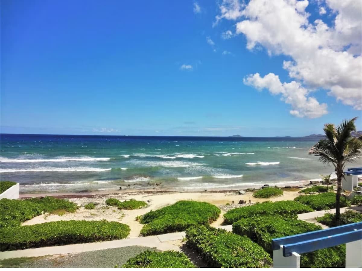 Condomínio estúdio bonito e tranquilo à beira-mar. Cama king size com varanda privativa. Localizado em condomínios Sugar Beach. Piscina no local, quadras de tênis e estacionamento gratuito para os hóspedes desfrutarem. Este apartamento à beira-mar oferece todos os luxos de casa com a vista magnífica da nossa praia arenosa e águas azul-turquesa. Se você prefere relaxar na praia na brisa dos ventos tropicais ou à beira da piscina com um moinho de açúcar histórico. O condomínio também tem sua própria máquina de lavar e secar roupa privativa.