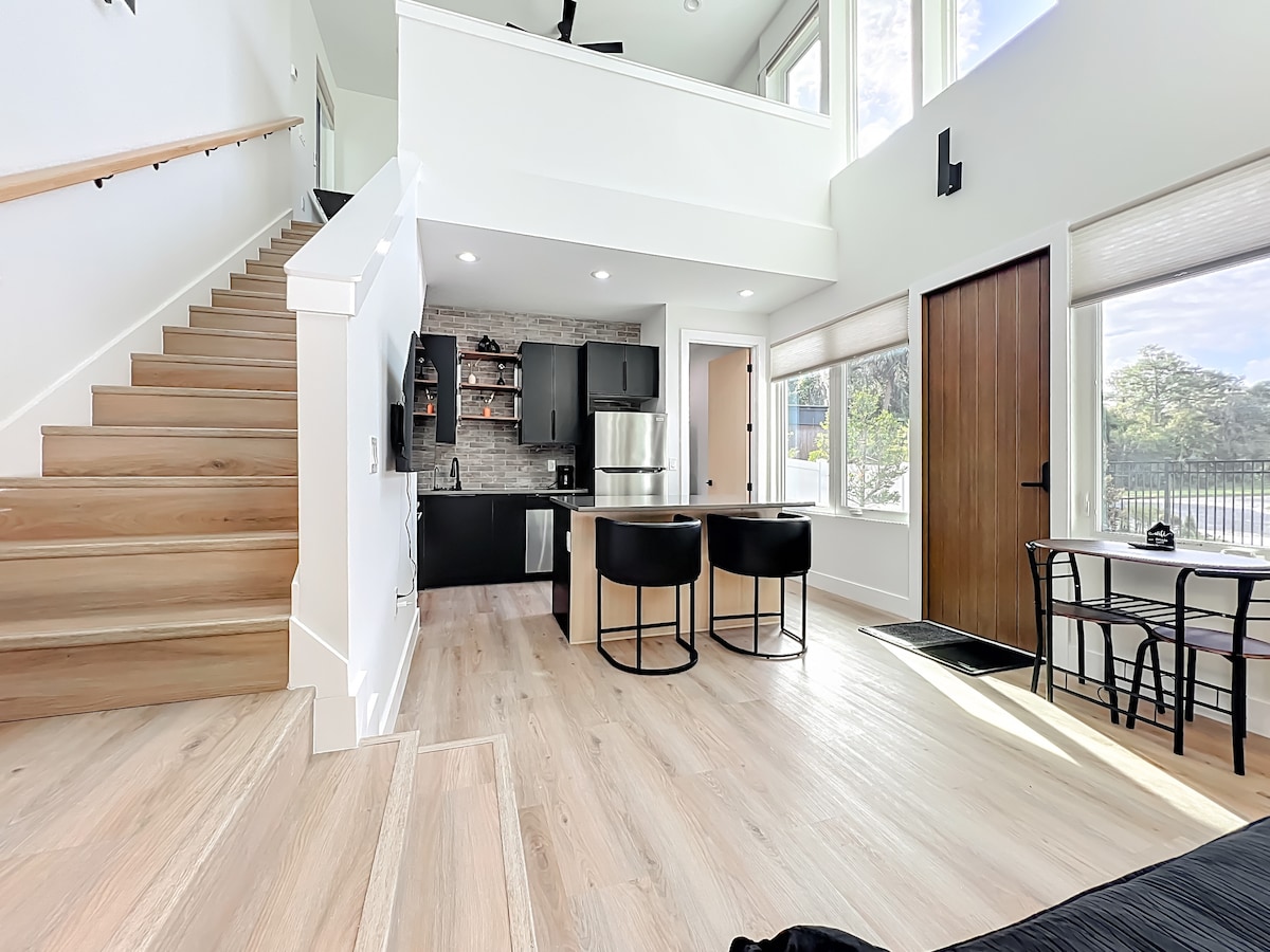 Convenientemente localizado entre o Milk District, amigo dos amantes da gastronomia, e o centro de Orlando, este espaço impecavelmente pensado apresenta um espaçoso estilo loft com plano aberto perfeito para um casal ou pequeno grupo. As janelas do chão ao teto permitem que a luz natural preencha o espaço, proporcionando total privacidade durante a sua estadia. Os restaurantes sofisticados de Winter Park e a vibrante cena artística de Thornton Park ficam a uma curta distância de carro. O Universal fica a apenas 20 minutos, a Disney a 35 minutos e o MCO a 20 minutos.