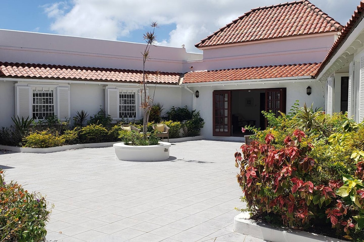 Bem-vindo ao Kai Mama Drew, uma vila situada em um cume com vista ininterrupta para o mar e para o campo de golfe. No momento em que você entrar em nossa porta, você terá chegado à verdadeira tranquilidade e opulência funcional, mergulhando em um refúgio de relaxamento total. Com fluxo constante da brisa atlântica. A vila abriga um amplo deck de piscina com uma piscina de 50x13 pés, áreas de estar sombreadas, uma grelha a gás, recanto de TV aconchegante e até uma esteira, tornando o tempo divertido e em família uma brisa.