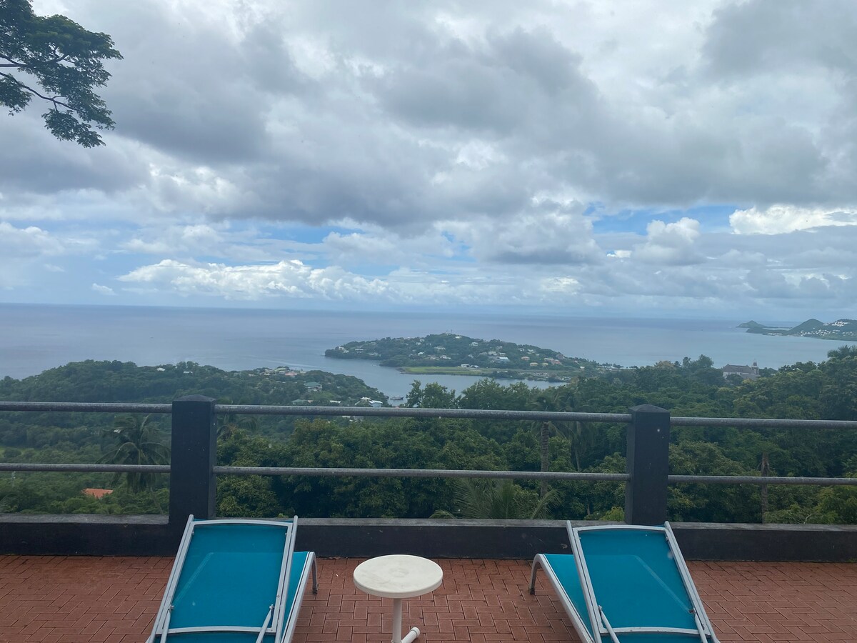 VISTA DESEJADA, faça as pazes com o oceano. Apartamento temático de um quarto e um banheiro, esta unidade pode acomodar 4 hóspedes com uma cama queen. Piscina grande espaçosa e bonita, entretenimento para grelhar ao ar livre, atividades diárias; mergulho, pesca, banhos de lama nas fontes de enxofre, trilho de Tet Paul, caminhadas pelos Pitons. Acordar com o pequeno-almoço diário servido todas as manhãs. Aluguer de carros, recolhas no aeroporto e entregas também disponíveis.