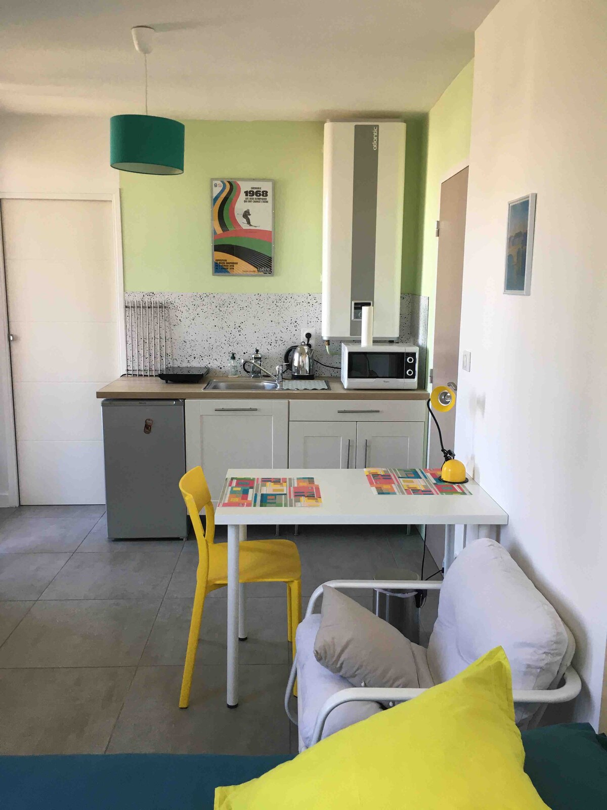Estúdio de 18 m2 bem iluminado com varanda. Localizado no 6º e último andar de uma residência tranquila, a 5 minutos a pé do campus, transportes públicos, lojas e restaurantes. Estúdio para uma pessoa, composto por uma kitchenette (frigorífico com congelador, micro-ondas, placa de indução, pratos), uma casa de banho separada (com chuveiro, lavatório e sanita), uma varanda com vista desobstruída para as montanhas. Permitido fumar na varanda. Estacionamento gratuito na parte inferior do edifício.