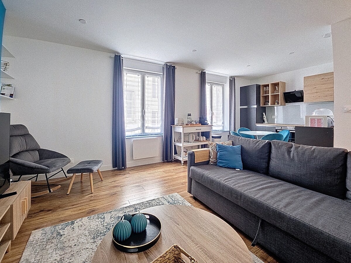 Petite rue au calme en secteur sauvegardé XVIIIe s. Grand studio 38m2 rénové au rez-de-chaussée d'un petit immeuble de 3 étages. Idéal pour 1 à 2 personnes. Belles prestations : parquet teck massif, cuisine intégrée, grand placard avec penderie, lit king size, grande douche à l'italienne, wc séparé. BAIL MOBILITE pour séjours compris entre 4 et 10 mois, conditions particulières, m'interroger.