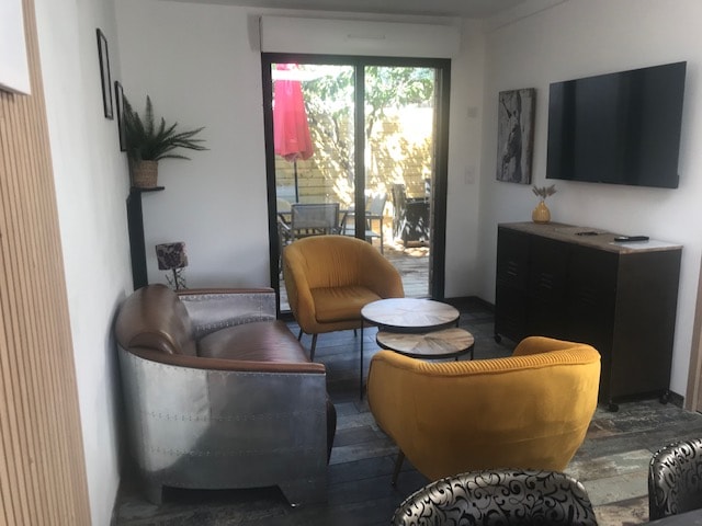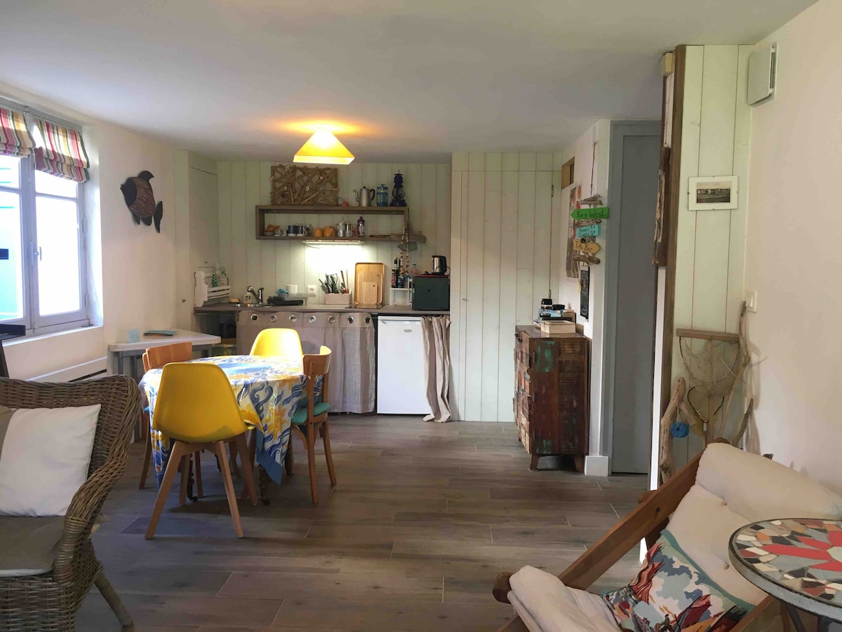 🏠 🌊 Alojamento Cocoon, limpo e independente, tranquilo, no piso do jardim da nossa casa com pequeno exterior fechado, nas alturas de Saint Pair, a 400 m do mar e a 500 m de todas as lojas (peixaria moderna, florista soberba, bar de tapas, tabacaria, restaurantes, padarias, talhos...), casino, igreja, supermercado, parque infantil, skatepark...